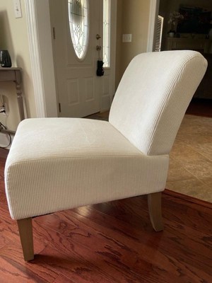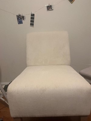 [This review was collected as part of a promotion.] I am absolutely thrilled with my new DHP Hazen Armless Upholstery Accent Chair in Ivory Corduroy! Not only is it stunningly stylish, but it's also super comfortable. The chair is perfect for curling up with a good book or enjoying a relaxing evening. But what really impressed me was how easy it was to assemble. I was a bit nervous about putting it together, but the instructions were clear and concise, and all the necessary materials and tools were included. It literally took me less than 30 minutes to assemble the entire chair! The quality and durability of the chair is top-notch, and the ivory corduroy fabric is soft and plush. I've been using it for a few days now, and it's become my go-to spot to unwind. Overall, I highly recommend the DHP Hazen Armless Upholstery Accent Chair. It's a great value for the price, and the simplicity of assembly makes it a breeze to get started. Five stars and a big thumbs up from me!