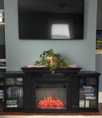 Fireplace mantel supports up to 100 lbs and accommodates a TV up to 65"