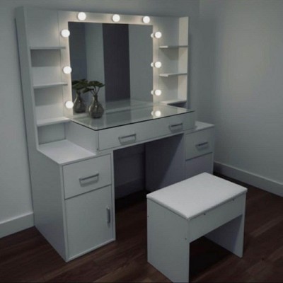 I absolutely love this vanity desk! The mirror with built-in lights is perfect for doing makeup, and the 3 lighting modes make it easy to switch between warm, natural, and cool light. The glass top gives it a very elegant and modern look, and the charging station is super convenient for keeping my phone plugged in while getting ready. It works great as both a vanity and a nightstand. The white color looks beautiful and matches my room perfectly. Highly recommend!
