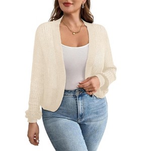 Women's Plus Size Cropped Cardigan Lightweight Hollow Out Long Sleeves Crochet Summer Short Shrugs Cardigan Sweater
