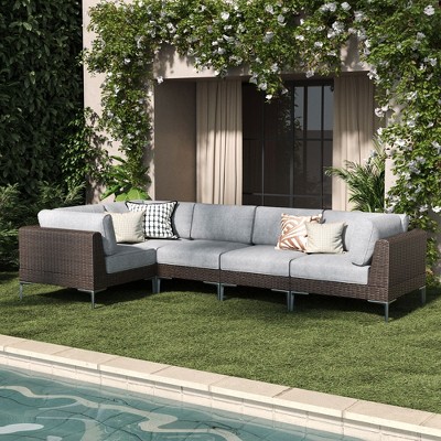 ALAULM 11 Pieces Patio Furniture Set, Rattan Wicker Outdoor Conversation Sets, Furniture Sofa Set w/43in Propane Fire Pit Table