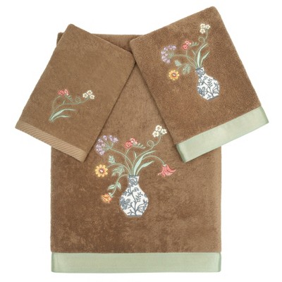 Linum Home Textiles 100% Turkish Cotton SHELL ROW 3PC Embellished Towel Set-Cocoa-3 Pcs Set