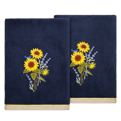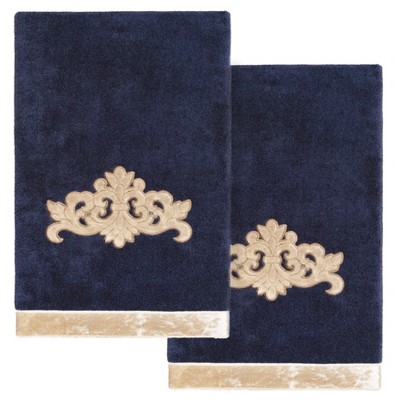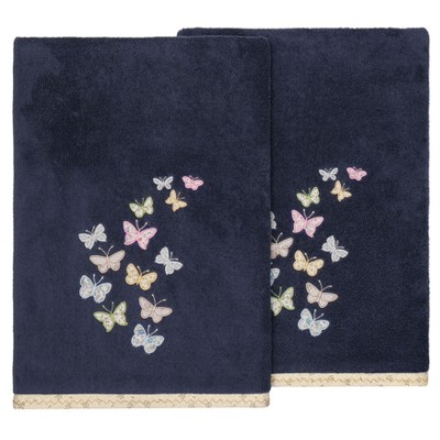 Linum Home Textiles 100% Turkish Cotton SHELL ROW 2PC Embellished Bath Towel Set-Marine-2 Pcs Bath Towel