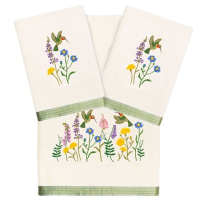 Your bath decor is not complete without delightful embroidered towels for the comfort of your family and guests. The HADA towels feature applique hummingbirds, dancing among wild flowers and are trimmed with a lustrous taffeta border. Cloud soft and super absorbent, these luxurious, durable towels keep their plush appearance after washing. This collection is available in 8 elegant colors: White, Beige, Blush, Aqua, Silver, Cocoa, Charcoal and Marine. The HADA Towel Collection brings cheerful spirit and richness to your home decor and makes a great gift!