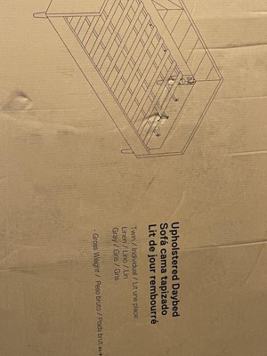 [This review was collected as part of a promotion.] This day bed comes in a box packaging. It is heavy to lift and not assembled. The bed comes with directions for assembly and power tools makes the process easier. The day bed has beautiful gold feet and a gray chevron backing. This is perfect for a playroom or a bed in a nursery. Very good quality!
