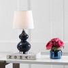 Illuminate your space with the elegant Eva navy double gourd mini lamp. This stylish lamp features a beautifully crafted glass base in a deep navy hue, offering a touch of sophistication to any room. Paired with a cream linen shade, it provides a warm and inviting ambiance perfect for relaxation or focused tasks. Its compact design makes it an ideal addition to side tables, desks, or cozy nooks, seamlessly integrating into various decor styles. Elevate your home setting with this sophisticated statement piece that blends style and function effortlessly.