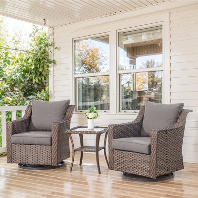 POCASSY Outdoor Swivel Chair Set of 4, Outdoor Swivel Rocker with Wood Grain Finish Square Armrest for Porch Balcony, Gray/Beige