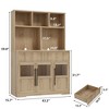 - Elegant Showcase: Elevate your kitchen aesthetics with textured wave-patterned and the glass door kitchen pantry cabinet dinnerware and decor, adding elegance and openness to any room, while the wooden parts provide privacy for less frequently used items, keeping your space organized and tidy.