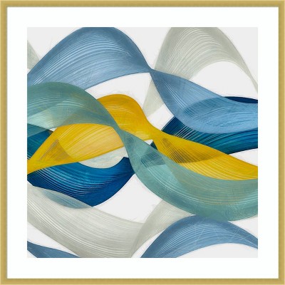 The artwork showcases a series of fluid, overlapping waves that create a sense of dynamic movement. The color palette features shades of blue and yellow, adding a vibrant energy to the piece. The textured brushstrokes give the composition depth and a rhythmic flow. This canvas art print was created by Alonzo Saunders and printed in Waunakee, WI. It is stretched across a solid surface to resist sagging. We use only premium, high-tension canvas. Our exclusive stretching techniques hide corner folds and provide a taut canvas surface. The artwork is authentically licensed. The canvas appears as if it is floating in the frame because it has a narrow gap between the edge of the canvas and the frame. Our canvas items are individually made using traditional custom framing techniques, it has the quality you would expect from your local frame shop.