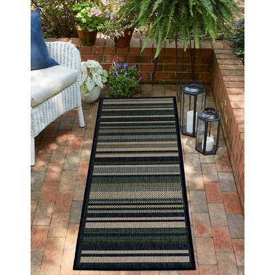 Imagine being enveloped by the canopy of a tropical rainforest, the rich colors of palm leaves all around, the sounds of waterfalls in the background and a warm misty breeze. Feel transported to paradise each time you step on the Baja Outdoor Collection. Inspired by classical illustrations of nature, these rugs are filled with warm earth tones, from ivory and tan to evergreen and rust red. Featuring Aztec-inspired geometric patterns and stripe patterns, the collection also includes an array of botanical patterns. Choose from designs ranging from a variety of elegant palm fronds to stylishly bold flamingo displays. Made of polypropylene, each rug is constructed using machine woven power looming, the low pile height holds up well in high traffic areas. With its kid-friendly stain-resistant construction and wide selection of shapes and sizes, it's a low maintenance choice for both indoor and outdoor placement.