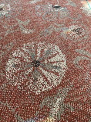 This rug is beautiful and so well-made! It wound up being the perfect colors for my deck, table, umbrella, and chairs they all blended! It came so well wrapped and so quickly! I will definitely shop here again. I also loved that I could see it on my deck through a photo!