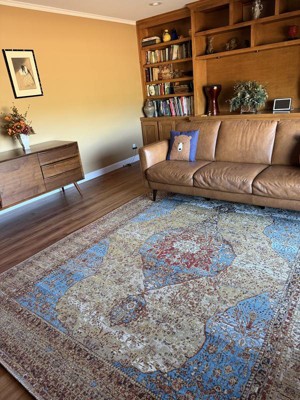 I was looking for a pet friendly rug for my living room with a Persian inspired design. This rug met all of my criteria including price point. I know this is more of an outdoor rug, but it still looks great in my living room.