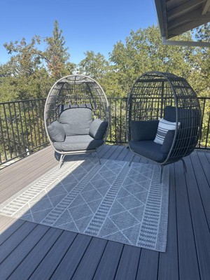 • CARE: For an outdoor rug, remove debris frequently with the use of a broom or blower. To wash, spray the surface with a soap and water mixture, then rinse thoroughly with a garden hose and hang over a railing to dry thoroughly. Rotate for even wear.
