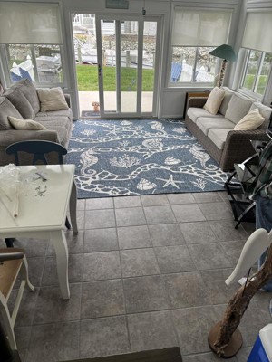 Guests appreciate the quality and aesthetic appeal of this rug, noting its vibrant colors and beautiful designs that enhance various spaces, from patios to kitchens. Many find it easy to clean and suitable for homes with children and pets. While some mention minor issues with curling edges or slipping, the overall satisfaction with the product's durability and style makes it a popular choice for both indoor and outdoor use.