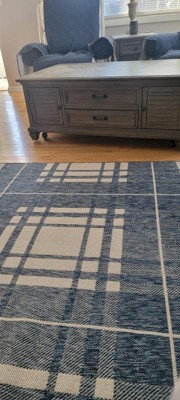 Unique Loom Outdoor Checkered Collection- Buffalo Plaid Area Rug (7' 10" Square Blue/Ivory)