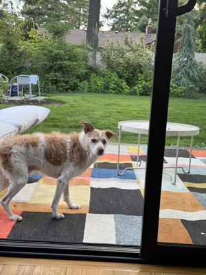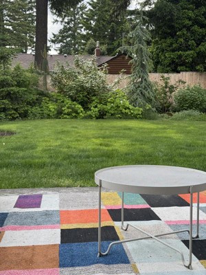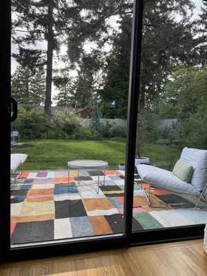 This rug has completely revived my patio. The colors are vibrant. The textures are comfy. I haven't tried to clean it yet, but it seems like it will vacuum really nicely.