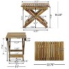 Give your outdoor seating ensemble a perfect companion that you can easily transport or store when not in use. With a classy rustic look, our side table brings a refined touch that is sure to impress guests and family alike. This accessory features stunning slat paneling and a foldable frame to enhance the way you utilize your backyard or patio space. Whether you are placing a chilled drink next to your lounge space or snacking on a plate of refreshments, our side table has you covered.