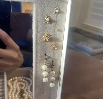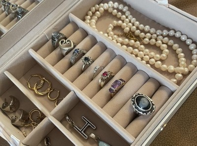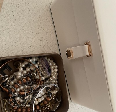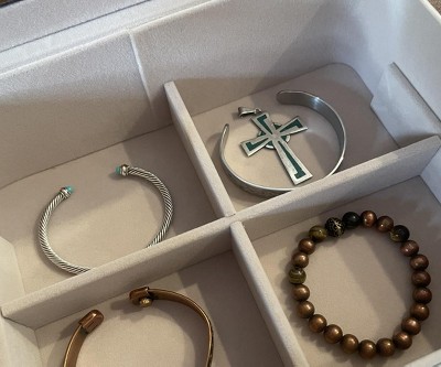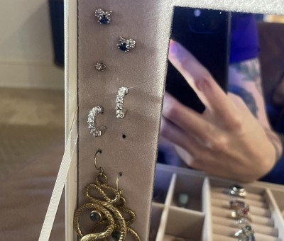 This is the perfect size jewelry box for my jewelry. It’s neatly organized, everything is visible and easily accessible. Has an additional holder for 26 pairs of earrings that I didn’t picture because I currently don’t need it.