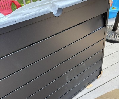 Table arrived damaged. One metal beam was dented in broke off the metal. Very disappointed after spending $899 on this. It’s too heavy/big for me to send back.