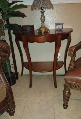 All Things Cedar Wooden Half Moon Console Table with Lower Storage Shelf for Living Room and Entryway Accent Furniture, Classic Accents, Cherry