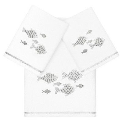 Linum Home Textiles 100% Turkish Cotton MAY 3PC Embellished Towel Set-White-1 Pc Bath 2 Pcs Hand Towel