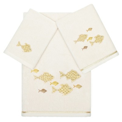 Linum Home Textiles 100% Turkish Cotton MAY 3PC Embellished Towel Set-Beige-3 Pcs Set