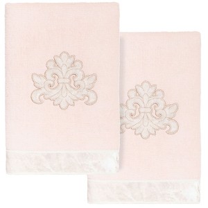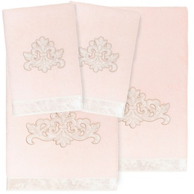 Your decorations are not complete without elegant embroidered towels for the comfort of your family and guests. The MAY towels feature a classic velvet crest applique and are trimmed with the same lustrous velvet border. Cloud soft and super absorbent, these luxurious, durable towels keep their plush appearance after washing. This collection is available in 8 elegant colors: White, Beige, Blush, Aqua, Silver, Cocoa, Charcoal and Marine. The MAY Towel Collection brings a refined spirit and richness to your home decor and makes a great gift!