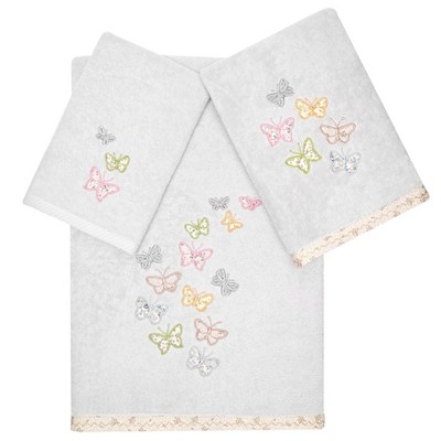 Linum Home Textiles 100% Turkish Cotton MAY 3PC Embellished Towel Set-Silver-3 Pcs Set