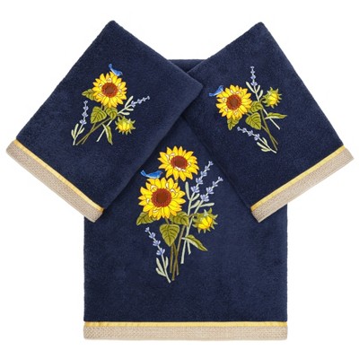 Linum Home Textiles 100% Turkish Cotton TORTUGA 3PC Embellished Towel Set-Marine-1 Pc Bath 2 Pcs Hand Towel