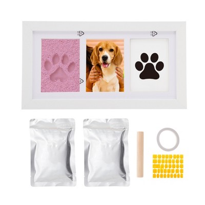 This DIY keepsake set provides everything needed to create a lasting memory of your pet, including a frame, instructions, a small wooden stick, double-sided tape, letter stencil, and 200g of clay. The customizable frame allows for a unique tribute to your furry friend, making it a heartfelt pet memorial gift. The clay and ink pad are made from pet-safe materials, ensuring comfort and safety during the process. Capture detailed paw prints and personalize them with names or messages for a one-of-a-kind tribute. Once completed, the framed paw print becomes a beautiful decor piece, serving as a constant reminder of the love and joy your pet brought into your life. This kit is a meaningful way to honor the bond between pets and their owners, creating a cherished memory. Specifications: Material: Density Board, Ink Pad, Plastic; Wooden Frame Size: 33.5x8.5cm / 13.19"x3.35"(L*W); Paper Photo Frame Size: 8x11.2cm / 3.15"x4.41"(L*W). Package List: 1 Set Paw Print Kit for Dogs.