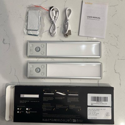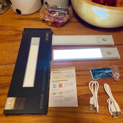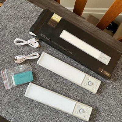 EZVALO 8" 2pk LED Cabinet Light Bar Magnetic Wireless Closet Lights, Motion Sensor, Dimmable, Black