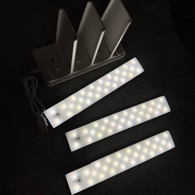 I love these rechargeable undercabinet lights for a lot of reasons. The first being the charging station that comes with it. It’s convenient, not only to charge these undercabinet lights, but it also charges other devices as well. The lights themselves are durable and super handy. They come with hardware for easy attachment and detachment, as well as a remote for easy programming and changing the lights. I may get another set for my closet, I love these things.
