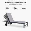 This chaise lounge will help you enjoy the baptism of the sun in an outdoor space. With its stylish design and adjustable inclination angle, it can bring you great comfort and allow you to fully relax. You can also lay it flat, just like a bed, which is perfect for an afternoon nap or sunbathing. The fabric of the backrest and seat is made of UV-resistant and breathable Textilene fabric, which is not easy to fade, and has the characteristics of being waterproof, oil-proof, and dries quickly. There are two wheels on the back legs, so you can easily move this chaise lounge to your desired location. Whether it is placed on your patio or deck, this chaise lounge will add a touch of elegance to your space.