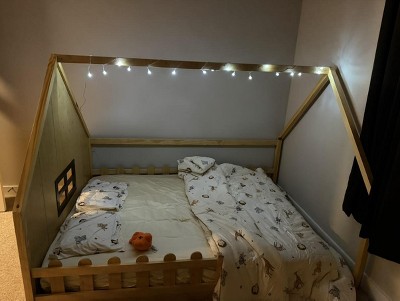 We absolutely love this bed frame! It was the perfect addition to our daughter’s room. The house-style frame is not only charming but also adds a fun, imaginative feel to the space. It’s very sturdy and sits low to the ground, which gives us peace of mind knowing it’s safe and easy for our daughter to climb in and out of bed. Assembly was straightforward, and all the pieces were well labeled. The frame is strong, and the white finish looks clean and bright. We paired it with pink bedding, and it looks like something right out of a storybook—especially with the soft string lights we added! Highly recommend this for any parent looking to create a dreamy, cozy space for their child. Target nailed it with this one!