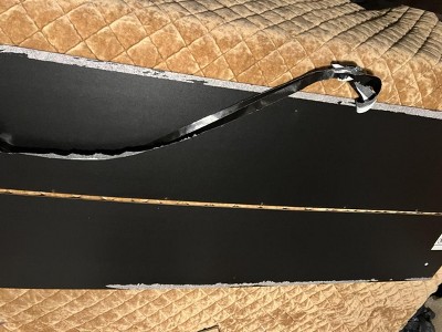 Overall a beautiful cabinet. For some reason they duct taped two of the particle board together and when I tried to remove them it ripped the black off. You can see in the picture. Unfortunately it’s one of the last steps when putting the cabinet together.