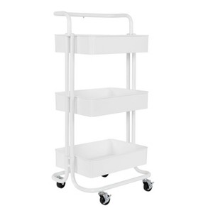 Get organized with Seville Classics 3-Tier Rolling Trolley Steel Utility Bin Storage Trolley Cart! Make the most of your space with three storage bins supported by a tubular steel frame and large swivel wheels. Designed for multipurpose use in homes, salons, businesses, and offices. Can be used as a beauty, tools, toys, food, clothing, office supplies organizer. The cart includes a smooth grab handle which lets users push and control cart with ease. The four large swivel wheels with two that lock adds stability when in use. Assembly is easy- simply screw the pieces together and get to work. The cart's dimensions fully assembled are 16.7 inches wide by 13.9 inches deep and 34.9 inches high.