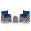 Costway 3 PCS Patio Wicker Rocking Set with Tempered Glass Table & Soft Cushions Outdoor Navy/Gray