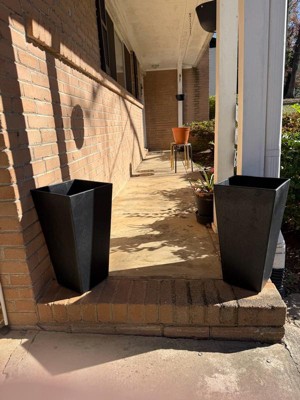 [This review was collected as part of a promotion.] The matte black finish gives these pots a clean, modern look that works beautifully indoors or outdoors. They feel sturdy yet lightweight, and the tapered design adds a nice touch of elegance without taking up too much floor space. They hold their shape well and don’t feel flimsy at all. These are perfect for tall plants, decorative grasses, or creating a statement entryway. Overall, great quality, great style.