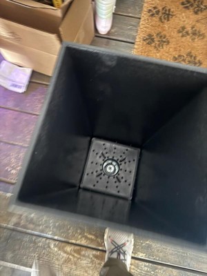 [This review was collected as part of a promotion.] The pot is super sturdy but light and easy to fill. The drainage isn’t too large and the piece at the bottom helps keep the soil in. The square tall shape looks great next to our doorway!! I love it so much!