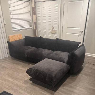 U-Shaped Sectional Sofa,Chenille Minimalist Modular Sofas Couches,6-Seater Sectionals Couch with Wide Reversible Chaise Ottoman for Living Room,Black