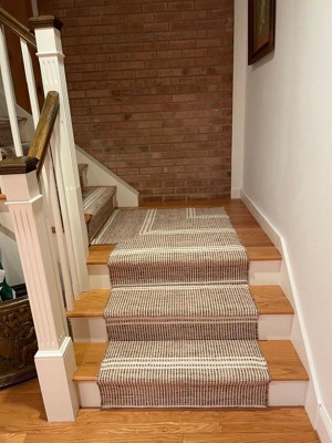 Since Malta Natural was only available in size 2.6’ x 8’ my installer told me to buy 4 rugs and he would piece them for the stairway as well as a mitered landing.