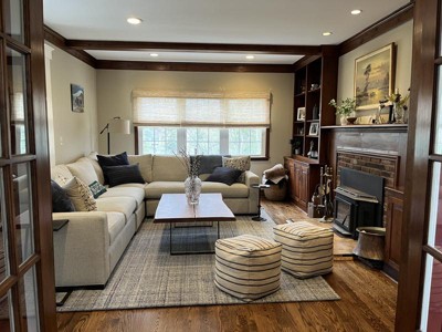 We purchased this rug to brighten up a previously dark family room. The color ways do a great job of adding brightness but still “disguising” everyday family life with the darker navy tones. We think it will a great fit for our home.