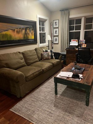 We just hung a beautiful piece of artwork and wanted an area rug that would compliment the new piece instead of compete with it. Colors are true to the website picture. Although, I was happy to see that it was a nice off white with the black. Very warm and perfect in our office.