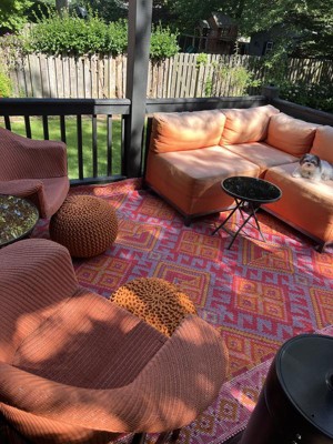 Beautiful rug. Great quality; very tightly woven and reversible! I'd been looking for an orange/pink combination for a very long time. Great design. Ship time to Arizona was only a few days!