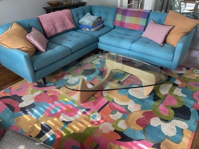We had purchased a turquoise mid century modern sectional which we love, but all of our rugs are from Turkey or Pakistan. Perfectly lovely rugs, but they just didn’t coordinate. When I saw this rug, I just knew it would be absolutely perfect. So much color. I didn’t realize we were using the wrong size as well and the 8x10 fits beautifully. I am so in love with our living room. It’s not everyone’s taste, but it’s ours. It’s fun and demands attention. There’s a lot of fuzz when we vacuum, but I think that’s normal at first. It’s heavy and thick and very well made. Love it!!!