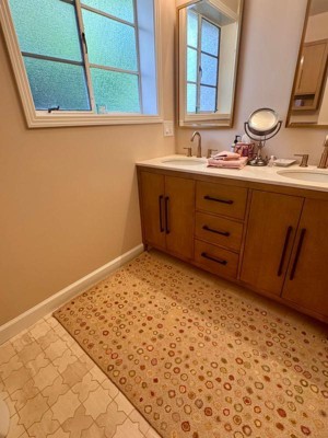 I had been searching for the perfect rug for a guest bathroom. I didn't want the typical bathroom rug and this rug fit perfectly !