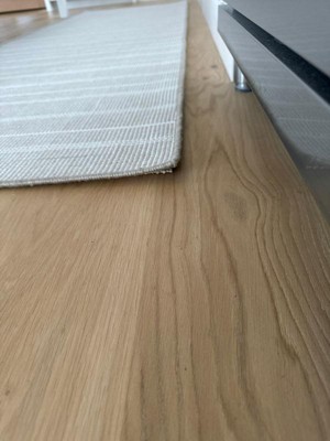 Purchased this in a custom size. While the rug is a nice color and fabric, the corners roll upwards. I’ve had books on the edges for over a week with no change. It’s my opinion that due to the stitching method, the will never lie flat. Not only is this annoying to look at, it’s a serious tripping hazard for myself and my elderly mother. So basically, I just wasted over $500.