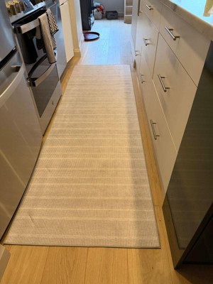 Love the look...light an airy...very coastal. Wish I had ordered a little darker color as it shows the slightest bit of dirt too easily.