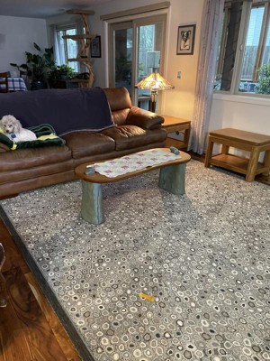 I lusted after this rug for months and months, but so glad I finally splurged on the 6 x 9. We put it on our cork floor in the tv room. Easy to vacuum. Love the pattern.