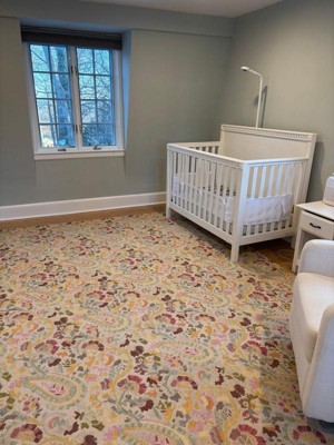 We love how this rug looks in our daughter’s nursery! The colors are beautiful (as pictured online) and material is high quality. It pairs beautifully with Benjamin Moore “quiet moments”. This is our second micro-hooked wool rug from Annie Selke and it won’t be our last.